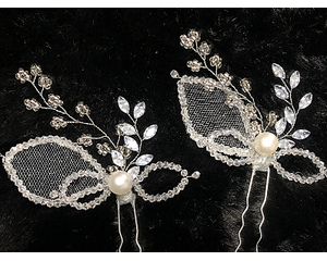 Handmade Hair Pin Set with Pearls and Rhinestones